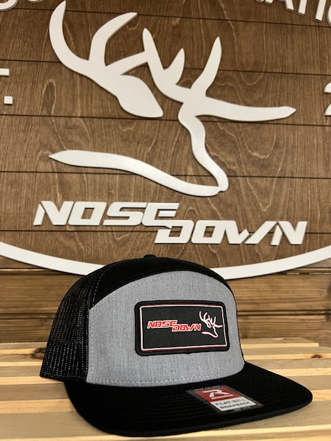 The Nose Down Black & Red Woven 7 Panel Hat blends bold style with everyday performance.
